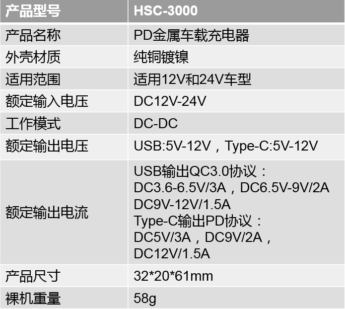 USB接口:支持安卓手機QC3.0快充。